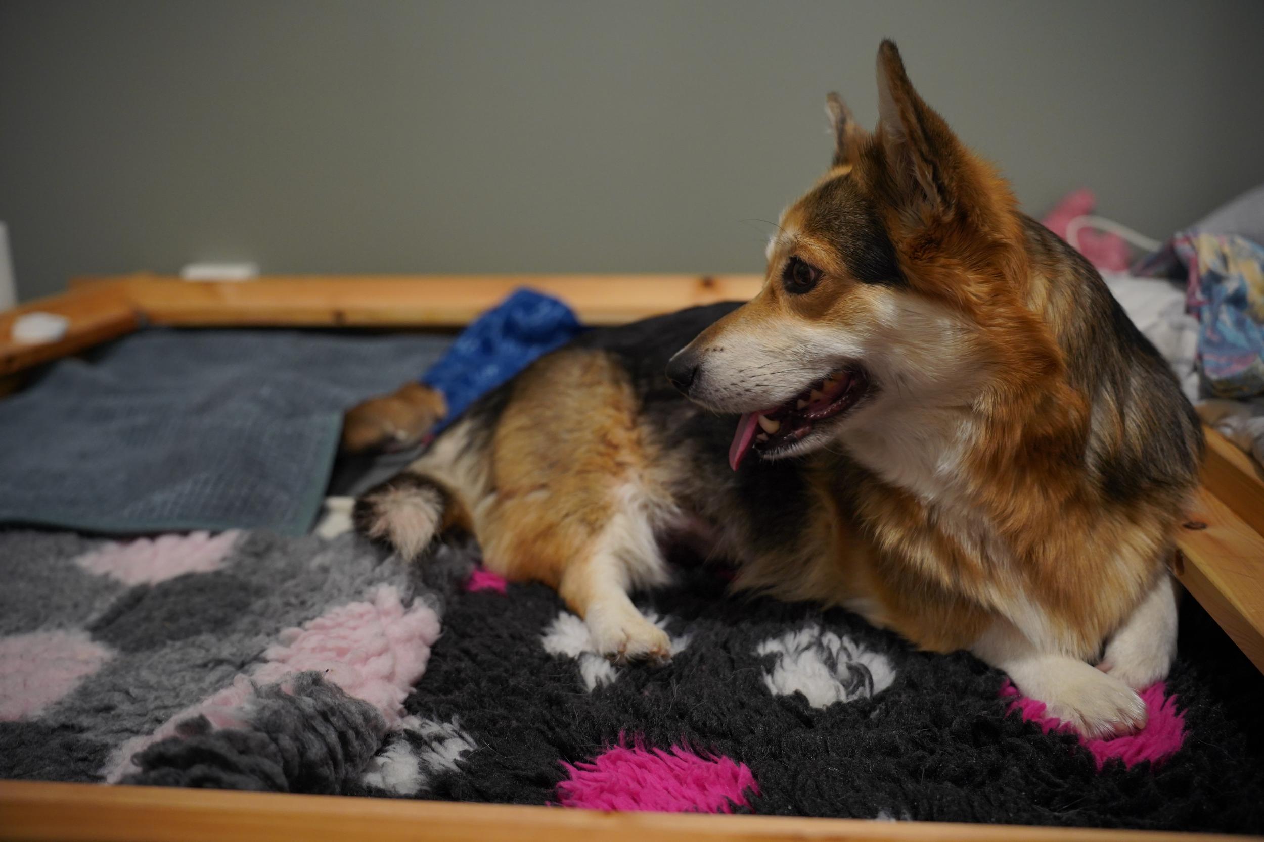 Seuraavat kaksi vuorokautta olivat ihmeellistä aikaa, kun univajeisina autoimme Bellaa pentujen kanssa tämän herätessä nukutuksesta ja alkaessa tutkailla pentujaan. Aluksi Bella vaikutti ihmettelevän, mistä pennut ovat tänne tupsahtaneet, mutta hiljalleen kiinnostus pentuihin lisääntyi ja pentujen aktiivinen hoivaaminen alkoi. Jo pentujen kolmantena elinpäivänä Bella hoiti pennut täysin itsenäisesti pyllyjen puhdistuksesta imetykseen. Voi mikä helpotus!