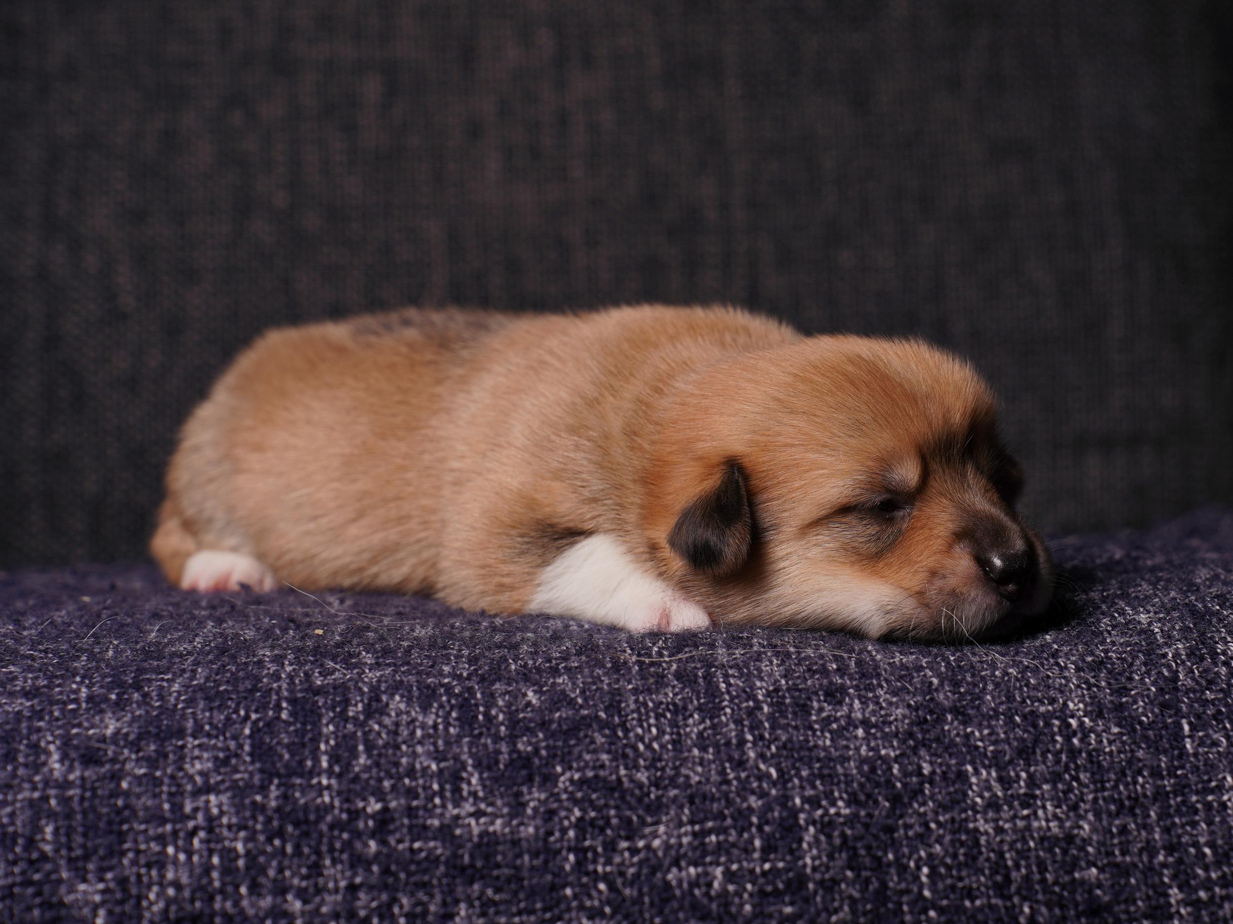 Pennut ovat aloittaneet harjoittelemaan kävelyä ahkerasti, vaikka silmät ovatkin pysyneet kiinni. Sinnikkäimmät harjoittelijat ja pisimpään pystyssä pysyvät ovat tähän mennessä Bertta ja Frans. Pennuista otettiin viikonloppuna MyDogDNA-testit ja pennuille annettiin Welpan madotus. Näihin uutuuksiin parhaiten suhtautuvan Eeva, Anna ja Frans, jotka ottivat toimenpiteet rennosti. Muut sen sijaan antoivat vastaväitteiden kuulua :)