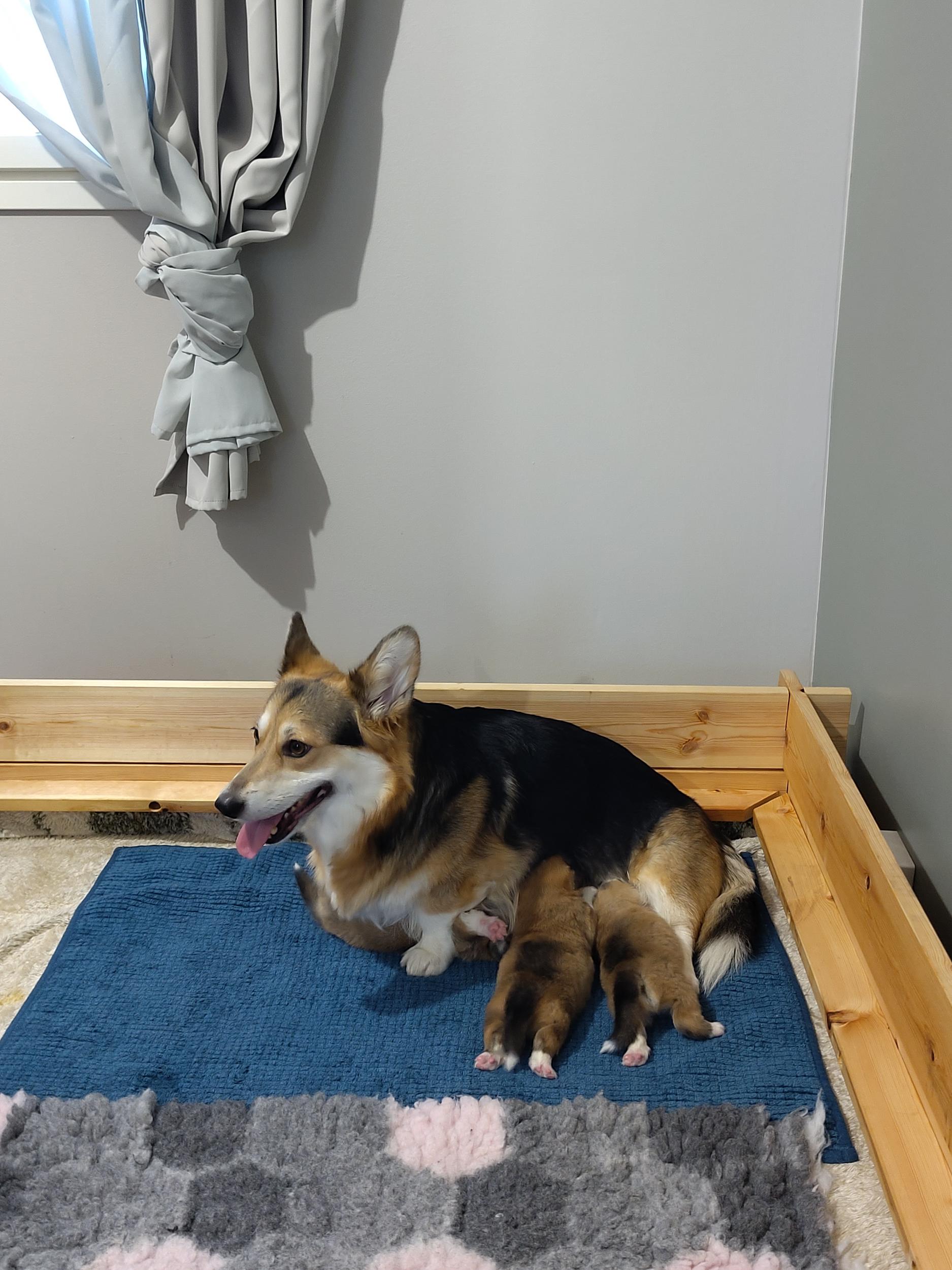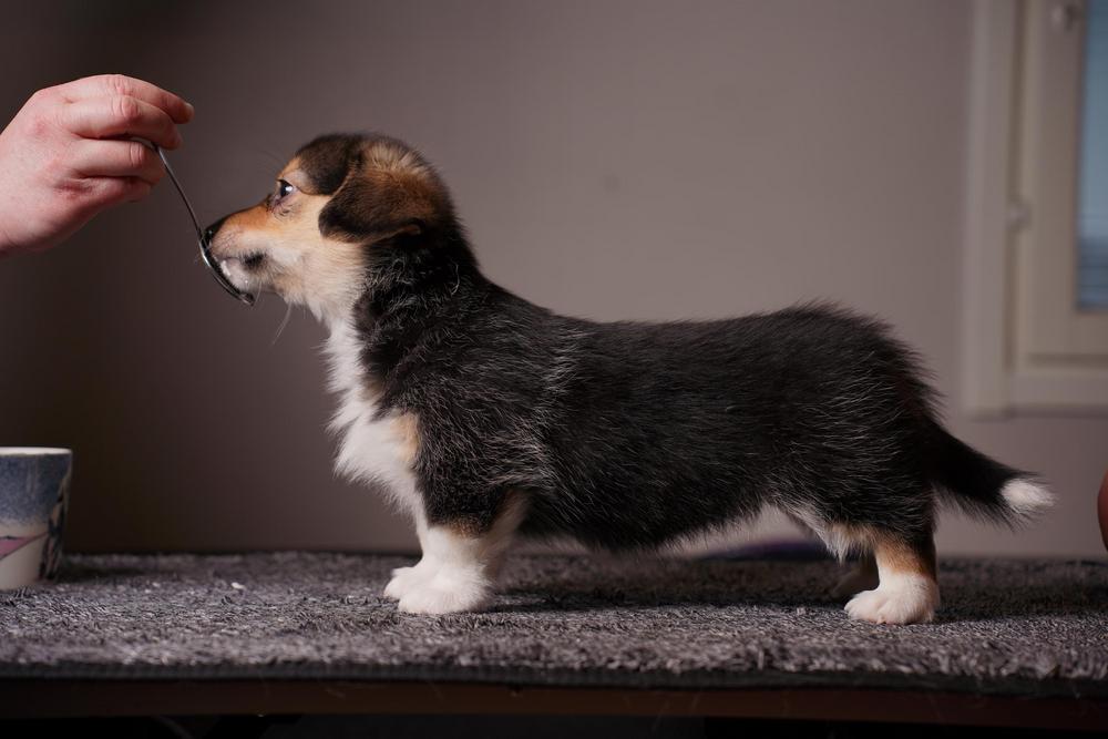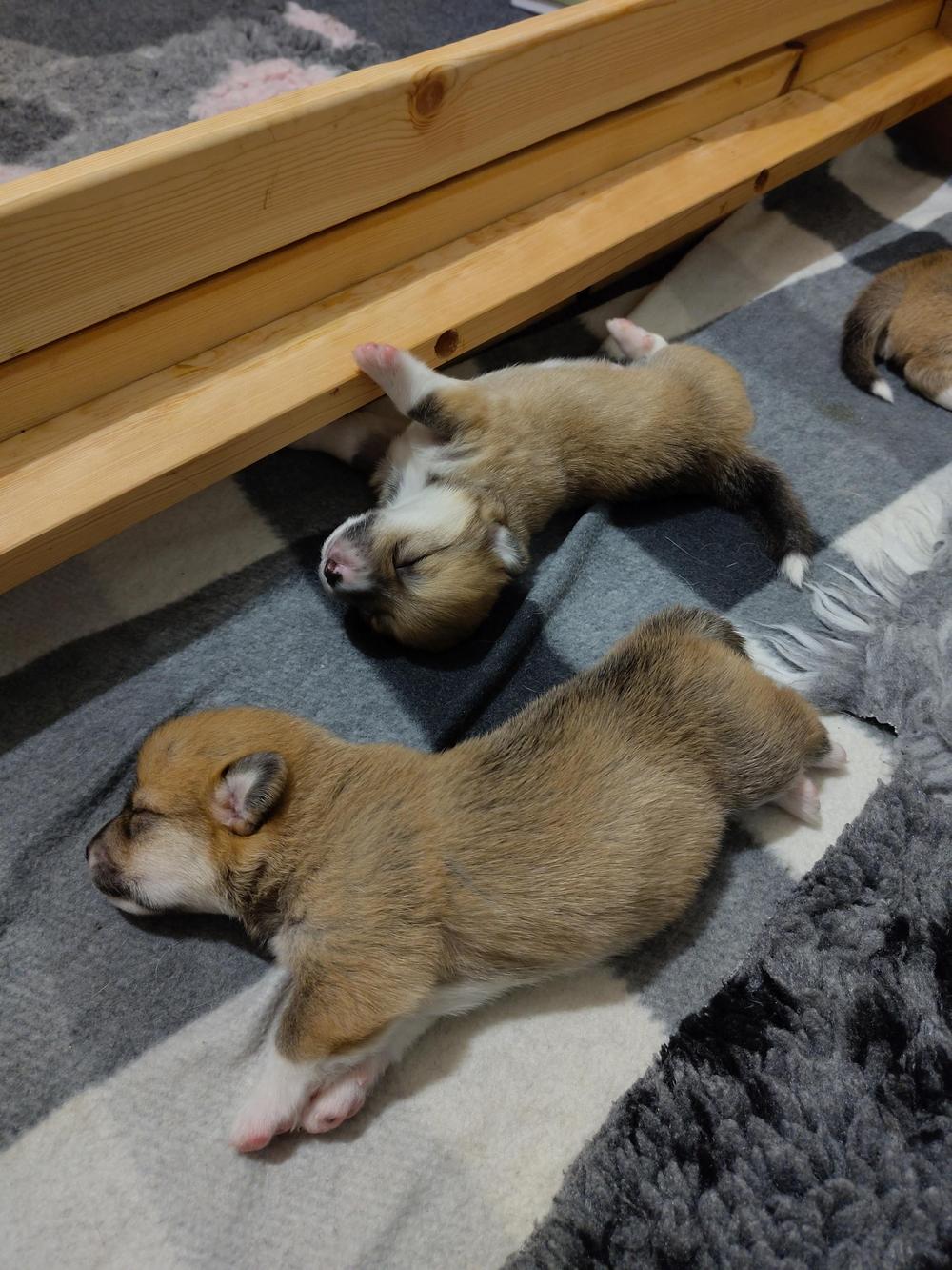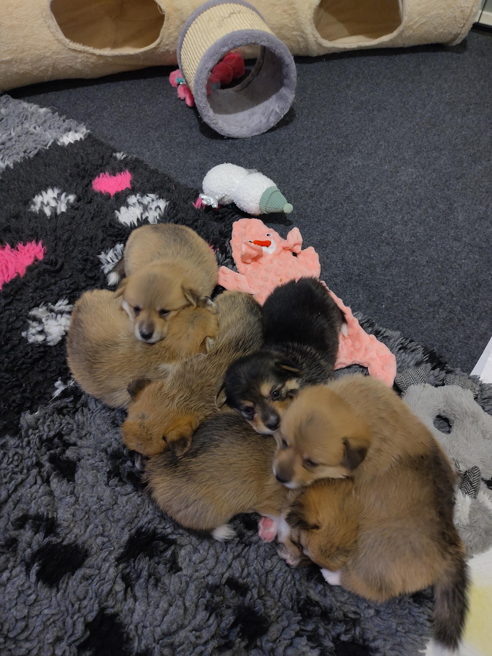 Pentujen kolmas elinviikko 10-16.11.2025 alkoi silmien aukenemisella ja siitä pentujen kehitys vauhdittuikin aivan valtavasti! Jo parin päivän päästä pennut ottivat ensimmäisiä kunnollisia askeliaan, maistoivat ensimmäistä kertaa kiinteää ruokaa ja jo saman viikon päättyessä pennut kävelivät itsenäisesti ympäri pentuhuonetta. Samalla viikolla pentujen hampaat alkoivat puhjeta ja Bella aloitti saman tien nisältä vieroittamisen asteittain. Bella alkoi viettää pidempiä aikoja pentulaatikon ulkopuolella (varmaan terävien hampaiden vuoksi), mutta halusi kuitenkin edelleen nukkua yöt pentujen kanssa. Pennut enää hädin tuskin pysyivät pentulaatikon sisällä kolmen viikon iän tultua täyteen. Pentujen kolmannen elinviikon aikana toteutettiin potentiaalisille pennunostajille videopuheluita pentulaatikon ääreltä ja sovittiin tutustumiskäynneistä paikan päälle. Ensimmäiset lähipiirin ulkopuoliset vieraat tulivat katsomaan pentuja niiden täytettyä kolme viikkoa.
