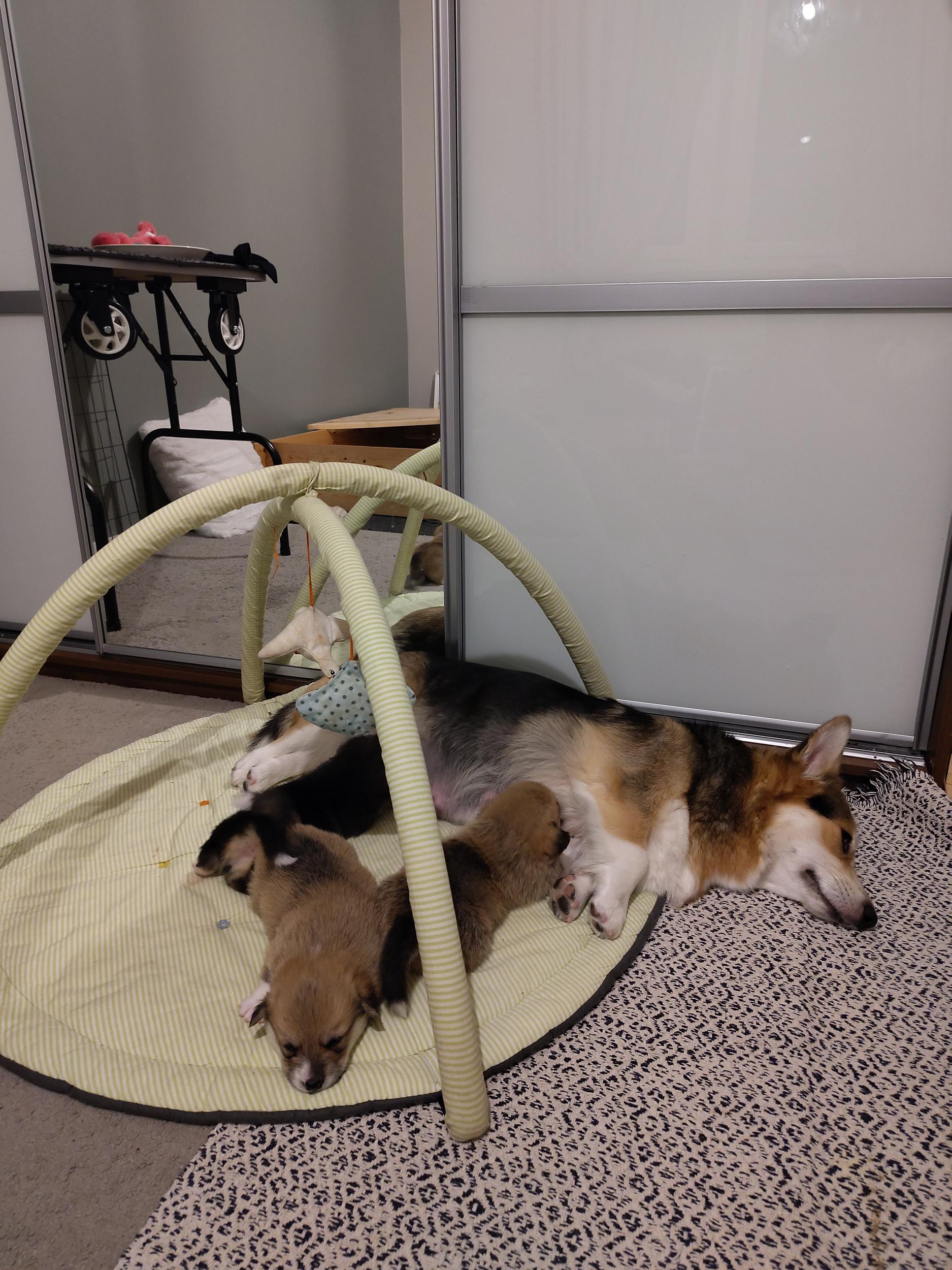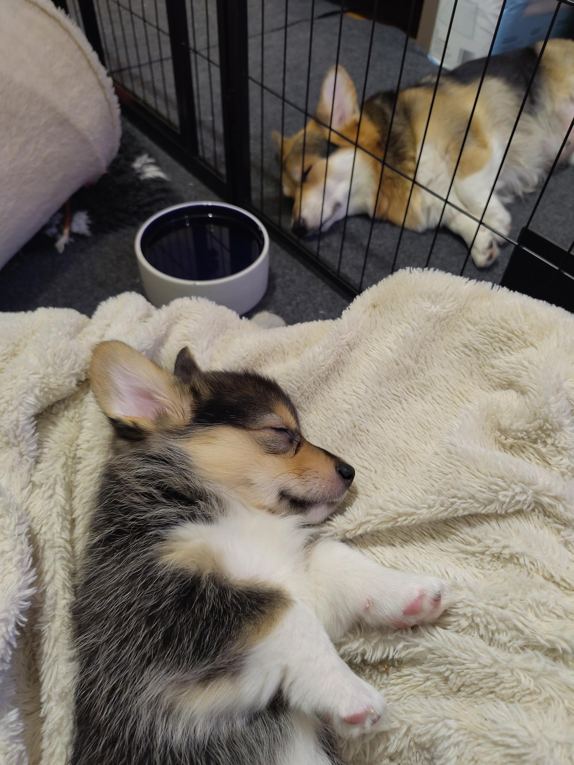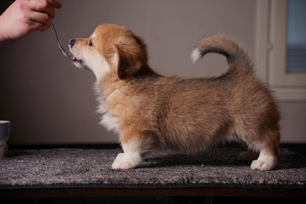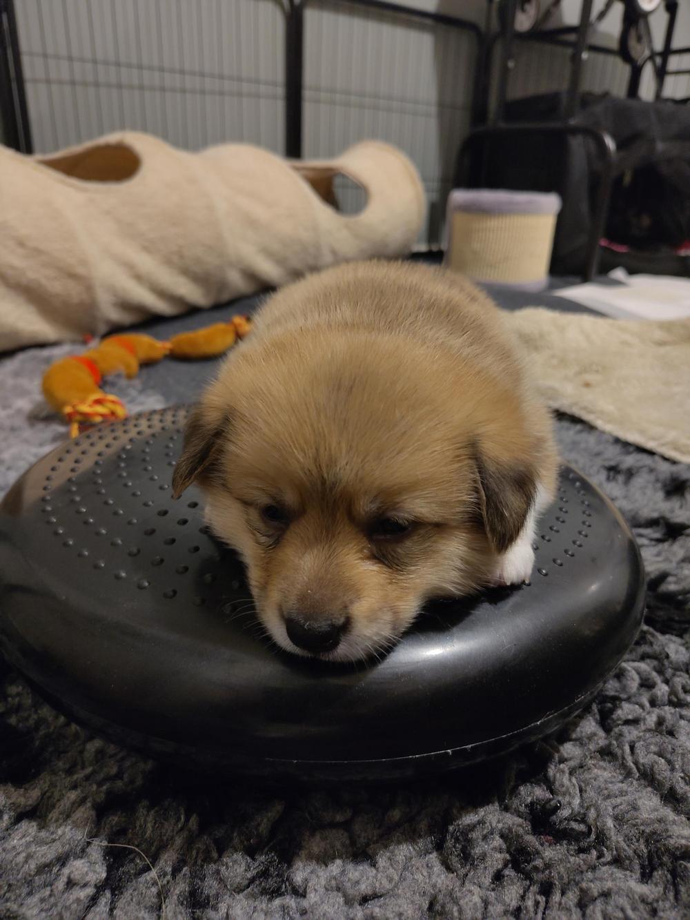 Pentujen kolmas elinviikko 10-16.11.2025 alkoi silmien aukenemisella ja siitä pentujen kehitys vauhdittuikin aivan valtavasti! Jo parin päivän päästä pennut ottivat ensimmäisiä kunnollisia askeliaan, maistoivat ensimmäistä kertaa kiinteää ruokaa ja jo saman viikon päättyessä pennut kävelivät itsenäisesti ympäri pentuhuonetta. Samalla viikolla pentujen hampaat alkoivat puhjeta ja Bella aloitti saman tien nisältä vieroittamisen asteittain. Bella alkoi viettää pidempiä aikoja pentulaatikon ulkopuolella (varmaan terävien hampaiden vuoksi), mutta halusi kuitenkin edelleen nukkua yöt pentujen kanssa. Pennut enää hädin tuskin pysyivät pentulaatikon sisällä kolmen viikon iän tultua täyteen. Pentujen kolmannen elinviikon aikana toteutettiin potentiaalisille pennunostajille videopuheluita pentulaatikon ääreltä ja sovittiin tutustumiskäynneistä paikan päälle. Ensimmäiset lähipiirin ulkopuoliset vieraat tulivat katsomaan pentuja niiden täytettyä kolme viikkoa.
