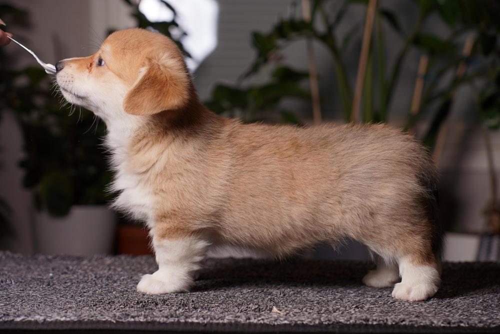 Neljännellä elinviikolla pentupakkauksiin tilattiin sisältöjä, ruokatarjontaa monipuolistettiin tarjoamalla erilaisia raakalihalisukkeita sekä ydinluuta puuhasteltavaksi, pennut pestiin ensimmäistä kertaa ja ensimmäiset potentiaaliset pennunostajat saapuivat tutustumaan pentuihin. Neljän elinviikon tultua täyteen pennut madotettiin jälleen Welpanilla.