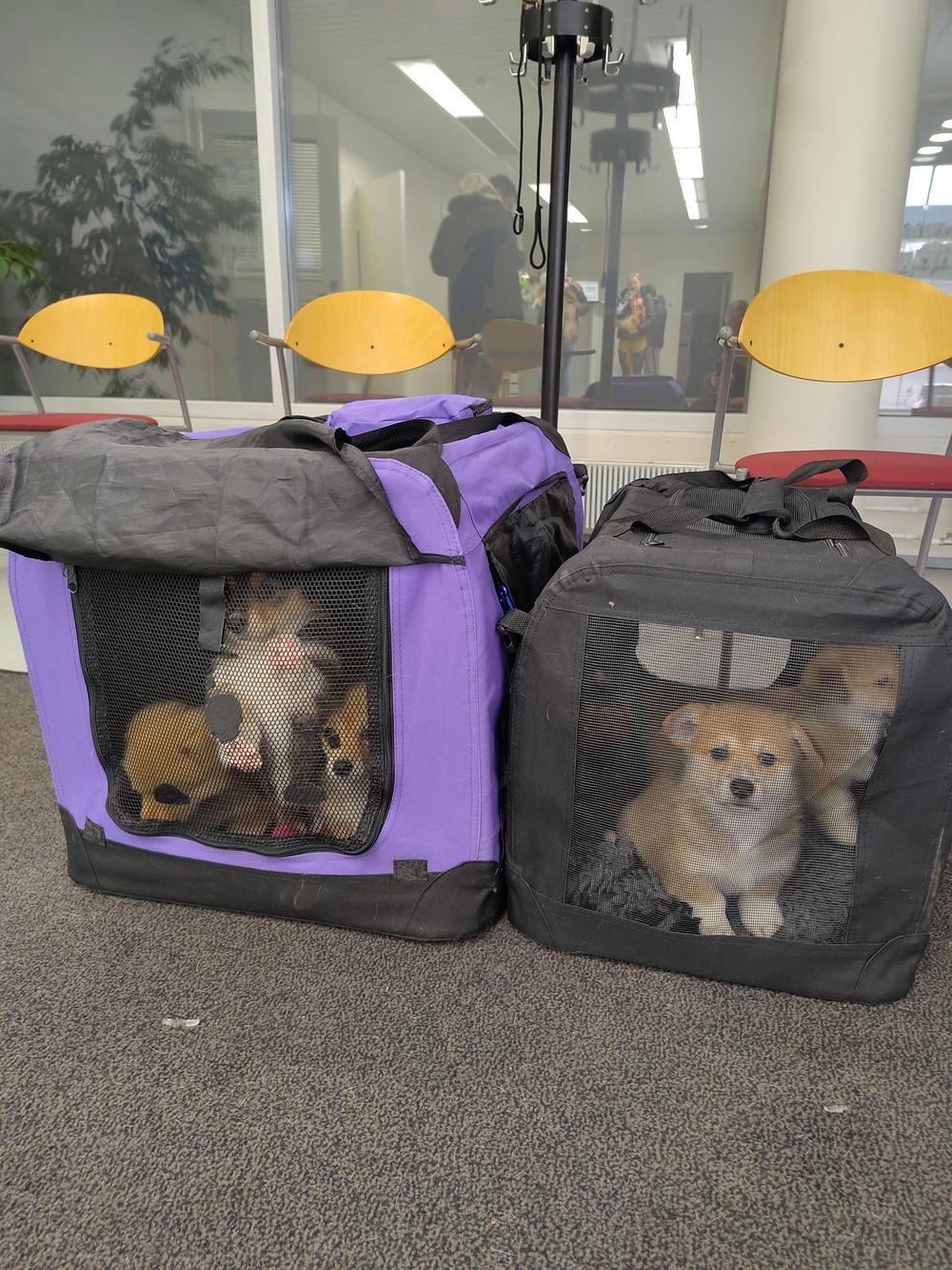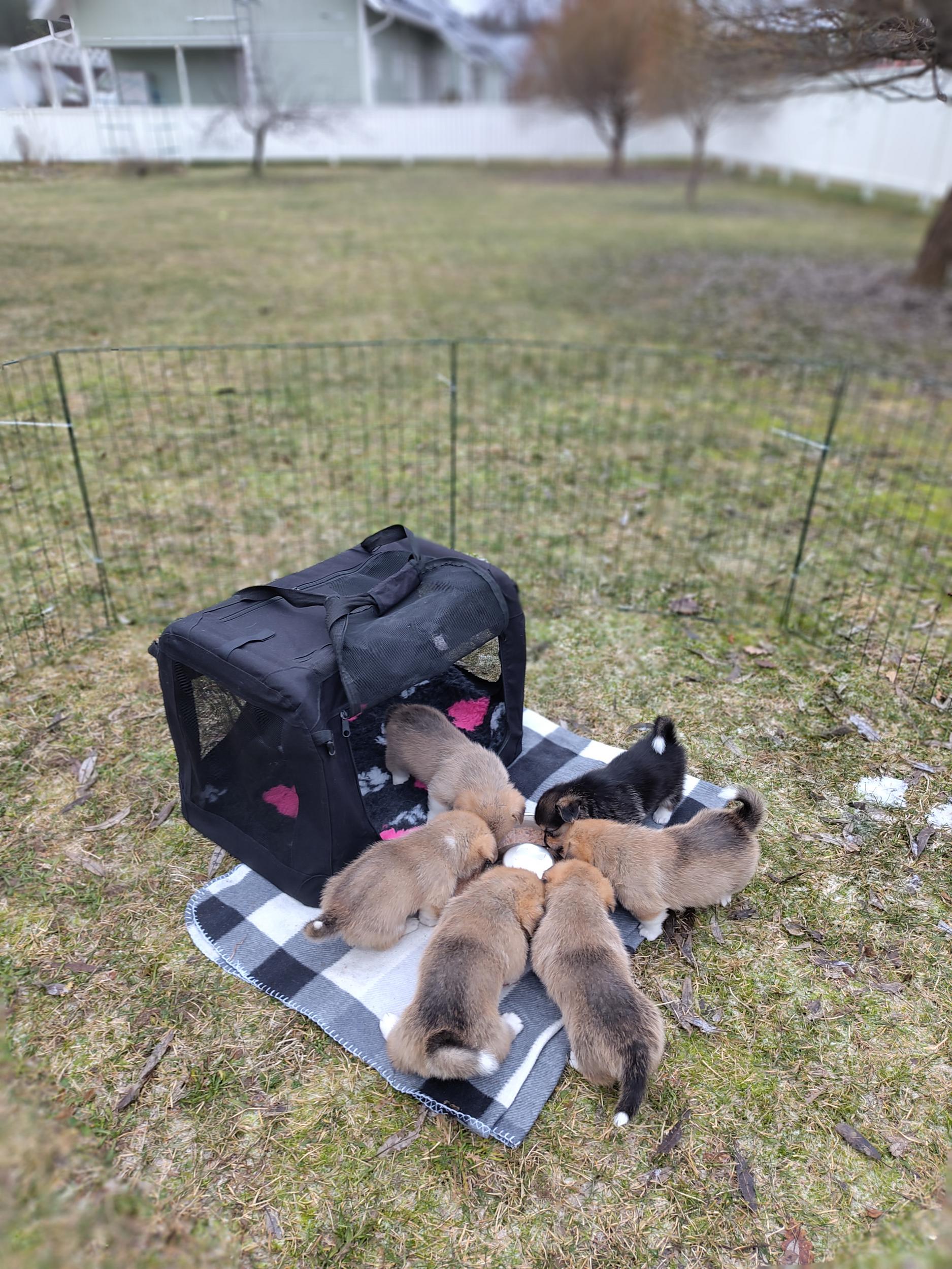 Viikonloppuna oli aika luovuttaa ensimmäiset kolme pentua uusiin koteihinsa. Noudon yhteydessä perheiden kanssa kahviteltiin, tehtiin kauppasopimukset ja Ruokaviraston koirarekisterin omistajanvaihdokset, leikattiin yhdessä pennun kynnet ja tassukarvat, katsottiin pennun hampaiden harjaus, otettiin pennuista viimeiset seisotuskuvat ja esiteltiin pentupakkauksen sisältö. Pentupakkauksen mukana tuli esitteitä, leluja, pentuaapinen-kirja, kennelin hoito- ja ruokintaohjeet, kaulapanta ja hihna, näyttelyhihna, hammasharja, käsintehty neule, MyDogDNA-testi, valokuvia tulostettuna ja Drive-kansiosta ladattavissa koko pentuajalta, ruokaa, aktivointilelu ja ilmaisen Nutrolin-öljyn lunastuskuponki. Loput pennut lähtivät uusiin koteihinsa jouluviikolla reilun 8 viikon ikäisinä.