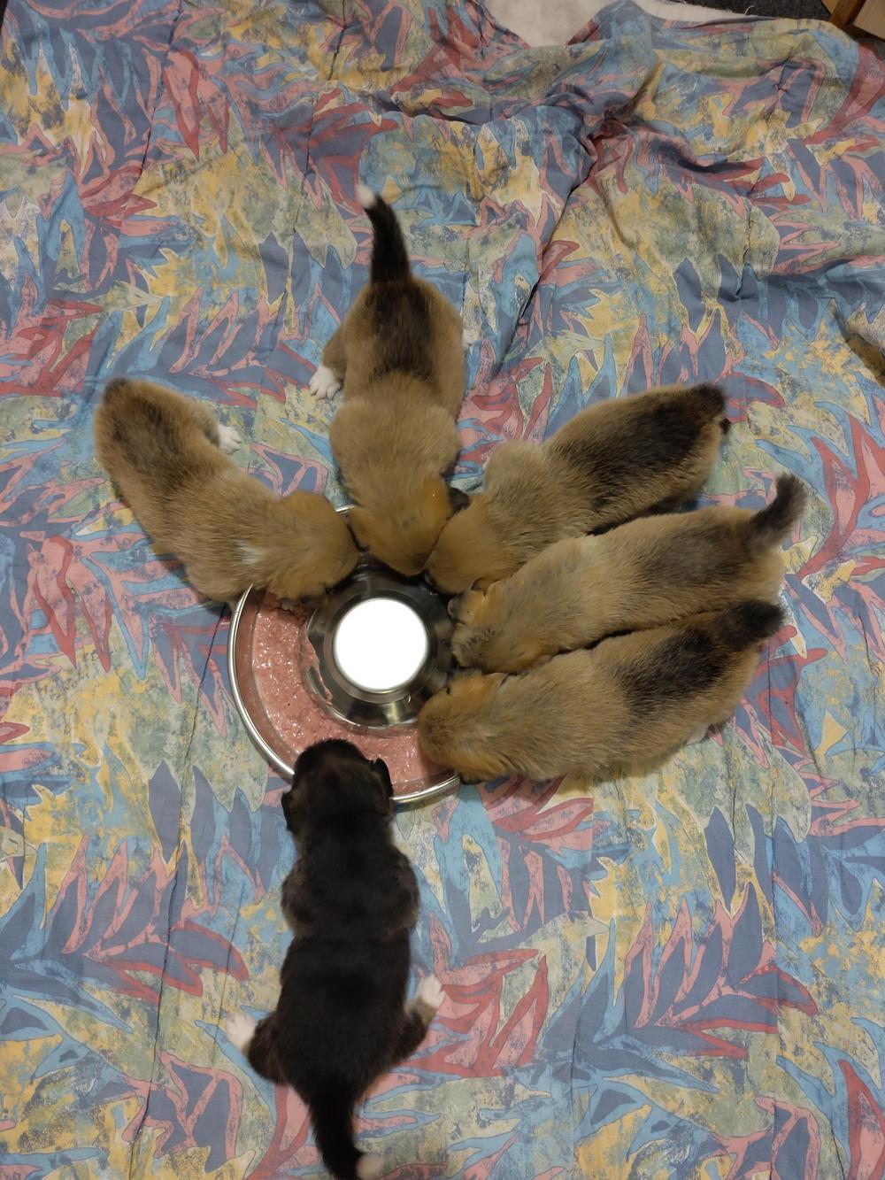 Pentujen luonteet alkoivat hiljalleen erottua vahvemmin. Anna tuntui muihin pentuihin verrattuna rauhalliselta pennulta, joka ei noussut pentueessa esille muuten kuin hyvällä ruokahalullaan. Bertta tarjosi pennuista ensimmäisenä eniten katsekontaktia ihmisiin, samalla kun Cecilia säntäili pennun luota toiselle haastamassa muita leikkiin. Danielia aloimme kutsua nallekarhuksi, sillä hän vaikutti olevan luonteeltaan erittäin rento ja rauhallinen, vaikka kyllä hänkin osasi antaa takaisin säpsäköille tytöille. Eeva oli pentueen rauhallisin ja itsenäisin yksilö, joka ensimmäisenä tutki uusia paikkoja rohkeasti läpi ilman erillistä tukea ja leikki hieman vähemmän muiden kanssa. Eeva oli samalla pentueen pienin painoltaan ja käyttikin oman aikansa uusien ruokien maisteluun. Frans puolestaan vaikutti hyvin samalaiselta kuin Anna, ollen melko tasainen pentu, joka ei noussut muista esille hyvässä tai pahassa.